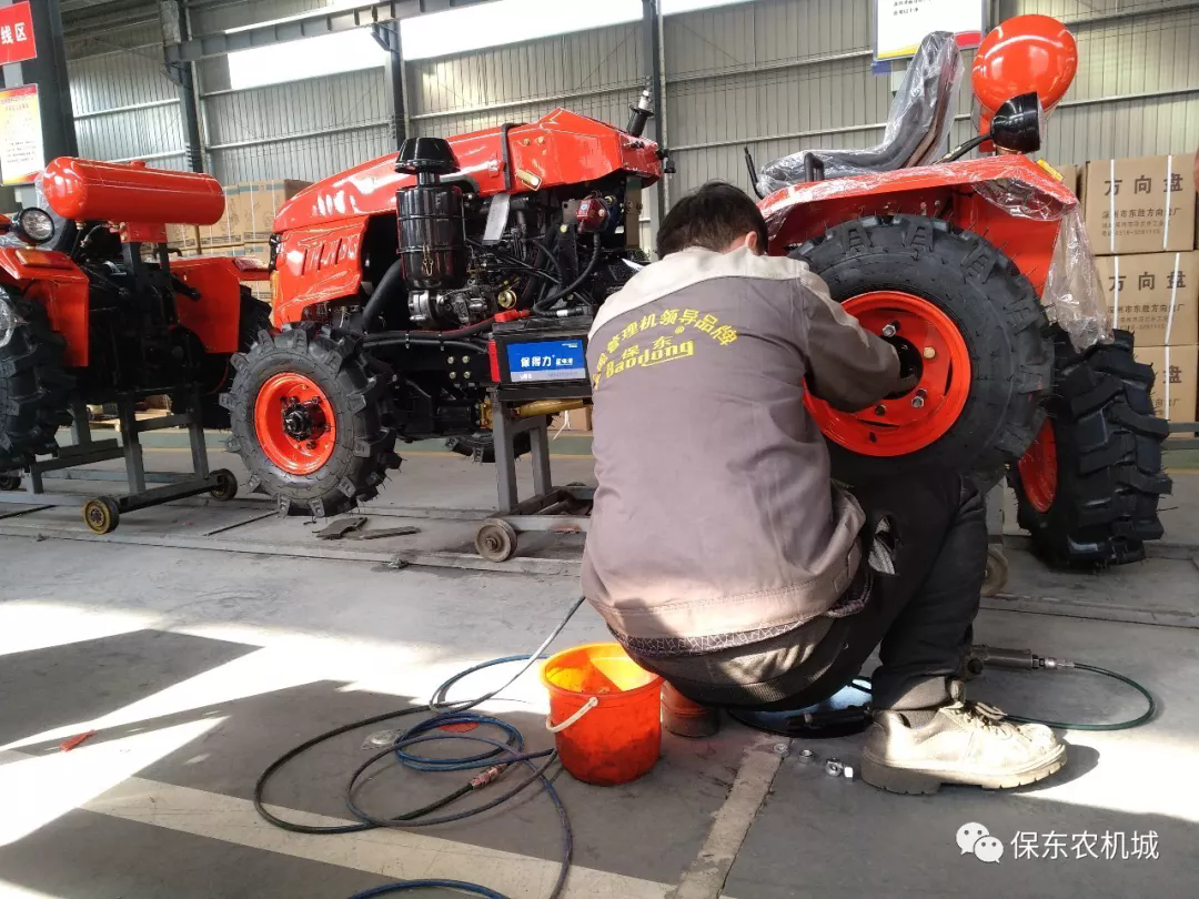 春节过后河北保东农业机械有限公司小四轮总装生产线奏响了春耕生产的交响曲。果园机装配线平稳运行,红色的果园机,像一条红色的河流工人们